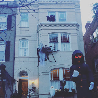 Ontem, pela primeira vez na minha vida, festejei o Halloween - o verdadeiro. Com um casal de amigos que tem dois filhos lá fomos, rua acima, rua abaixo, com os vizinhos, fazer o trick or treat. A América gasta 10 biliões de euros anualmente com o Halloween, pelas imagens percebe-se bem porquê. As fotografias foram tiradas em Georgetown, onde me deslumbrei com as casas e com a simpatia, elegância, distinção, dos seus proprietários. A real treat, I say.